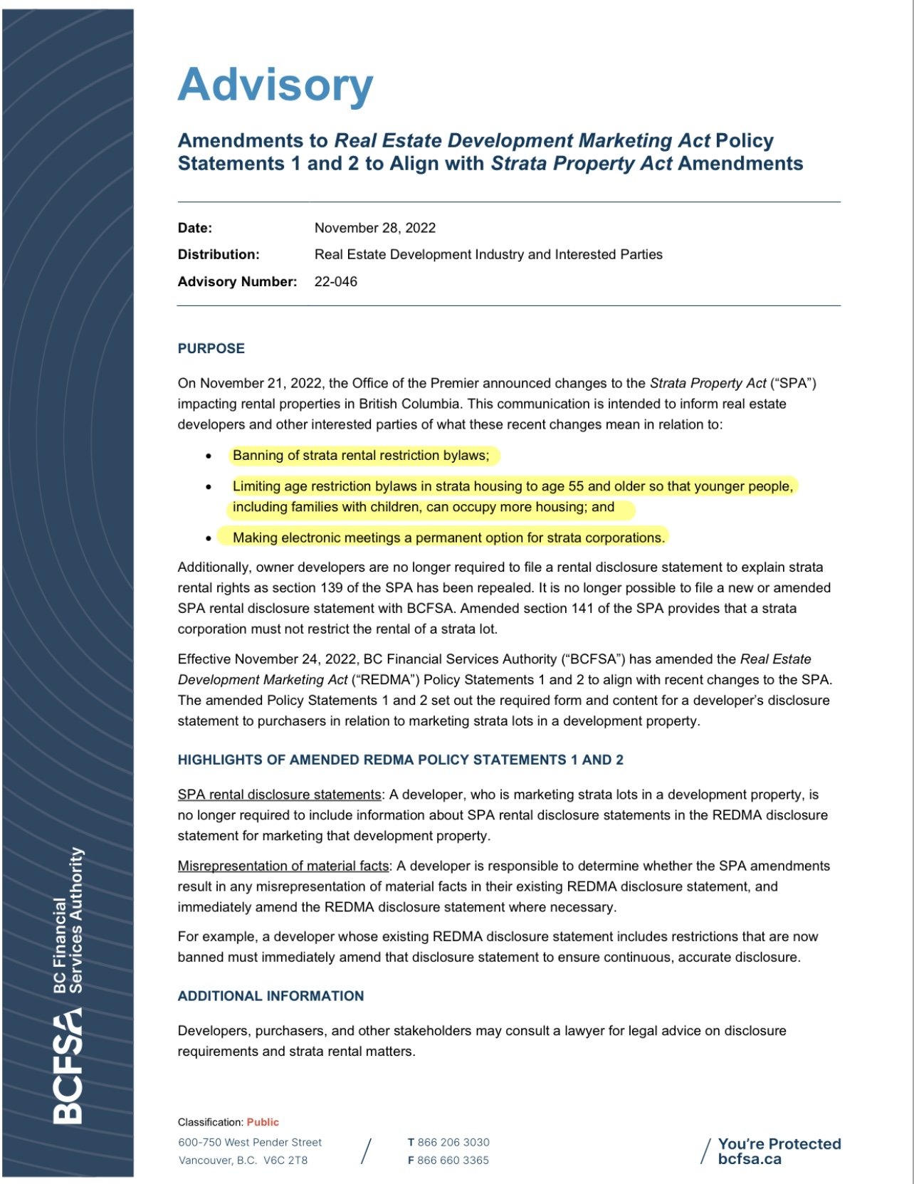 Reference (Nov 27, 2022): Progress of Bills, 3rd Session, 42nd Parliament (2022); Bill 44, Building and Strata Statues Amendment Act.